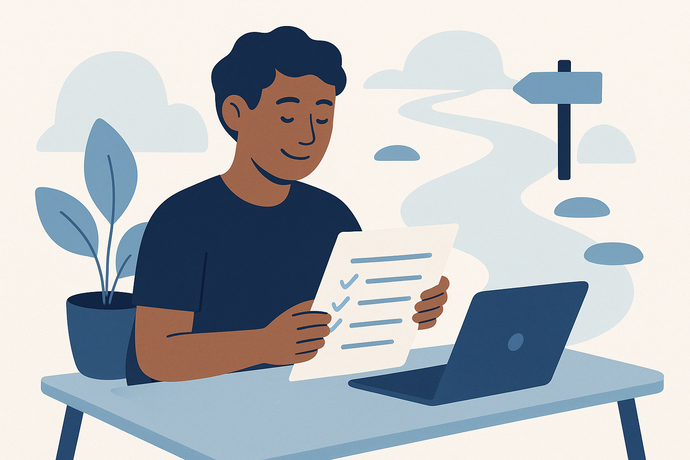 All you need to bring is yourself. If you already have a sense of your income, debts, or budget, that’s helpful — but not required. You’ll get a few short pre-session questions to fill out so we don’t spend the whole time on basics. The first session is about building clarity and a calm path forward, not perfection.